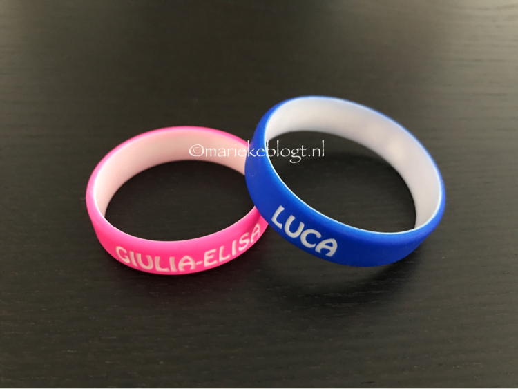 Gezelschapspelletjes, leesboeken en stiften nemen we ook altijd mee. Ik heb ook zulke bandjes voor de jongens laten maken, maar dan van RingRings. Ze hebben ieder twee bandjes gekregen, eentje met mijn nummer en eentje met dat van mijn man. Ben er dan toch iets geruster op als we ergens naartoe gaan. Moet ik ze alleen niet vergeten… ;-).