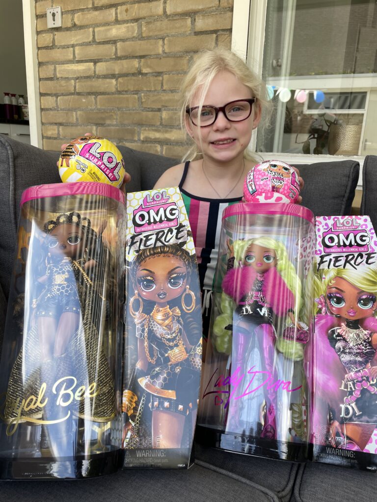 Van de zes jaar dat de poppen nu bestaan is mijn tuttebel er al minstens vier groot fan. Toen ze in augustus, vlak voordat haar grote mensenfeest begon, een groot pakket kreeg van L.O.L. Surprise! was ze helemaal hyper. Waar ik in eerste instantie alleen Lady Diva verwachtte, kwam daar ineens ook Royal Bee tevoorschijn en kreeg ze er ook nog de minipoppen Queen B en Lady Diva bij. Wat voor een meisje van acht natuurlijk wel echt helemaal geweldig is. Ze speelt echt dagelijks met de poppen en is wat dat betreft een enorme bofkont. Ze heeft al wel geroepen dat ze nu gaat sparen voor Swag en Neonlicious, want die mogen nu natuurlijk niet ontbreken. Wellicht doen Sinterklaas en de kerstman ook nog een duit in het zakje.