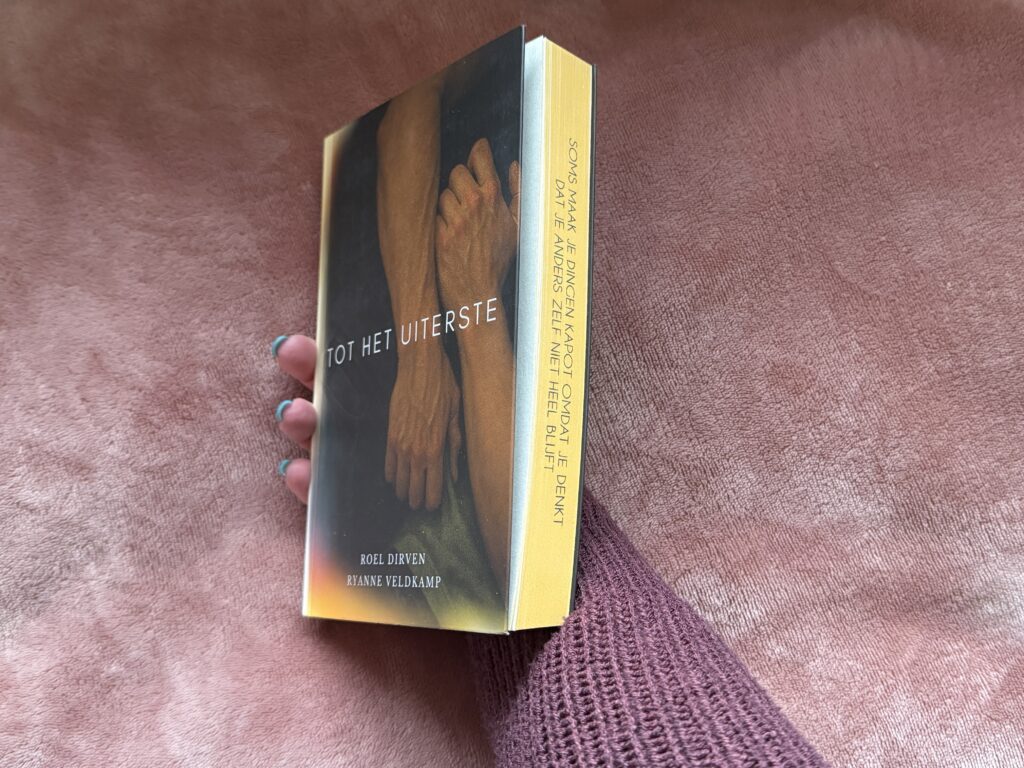 Na het lezen van Tot op de bodem was ik vooral heel erg nieuwsgierig naar Tot het uiterste. De quote verwerkt in de sprayed edges raakte mij al meteen, omdat het zo herkenbaar is, “Soms maak je dingen kapot, omdat je denkt dat je anders zelf niet heel blijft”.