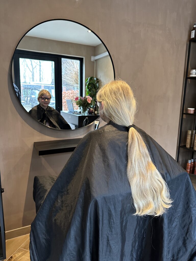Ik heb vorig jaar zomer mijn haar gedoneerd. In de coronatijd lang niet naar de kapper geweest en toen besloten om maar ‘even’ door te sparen. 🙂