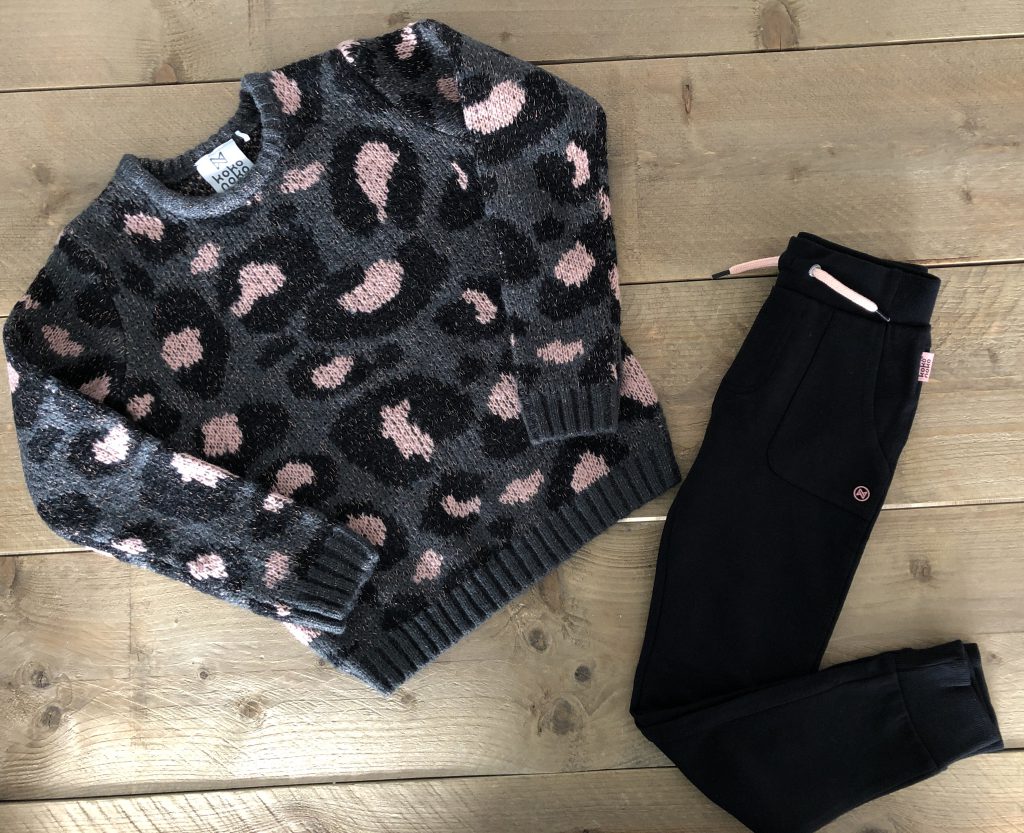 Deze set koos ze zelf uit. Een lekkere jogger met koordjes en daarbij een heerlijk dikke trui, met ook uiteraard de panterprint.