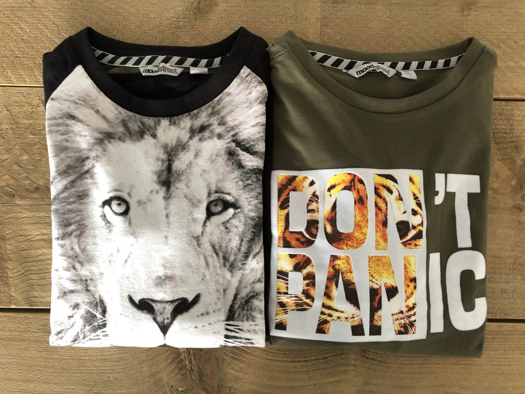 En hij koos ook nog twee stoere longsleeves uit, die hij ook kan combineren met de Moodstreet broek of broeken die hij al in de kast heeft hangen.