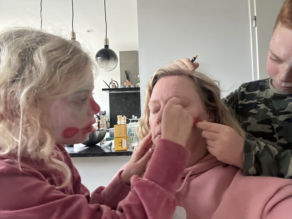 Hoewel het spel eigenlijk vanaf vier personen gespeeld moet worden, deden wij het met zijn drietjes, het is misschien anders dan met vier of meer spelers, maar het maakte voor ons het spel niet minder leuk. We hebben vooral heel erg veel lol gehad om het schminken. Helemaal toen ze mij samen mochten schminken.