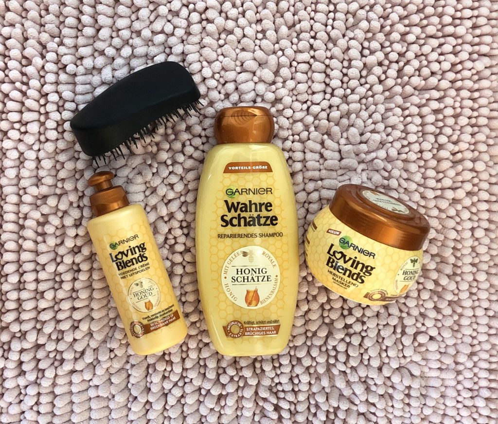 Een tijd lang gebruikte ik de kokosvariant van Loving Blends, maar alleen de geur al ging me tegen staan, waardoor ik overgestapt ben naar Honinggoud. Deze shampoo heeft een subtiele honinggeur, schuimt lekker, waar ik van houd en zorgt er voor dat mijn haar niet droog aan voelt, als ik het heb uitgespoeld. Daarnaast zit er in deze shampoo niet veel troep, wat ook weer heel erg goed is voor mijn krullen.
