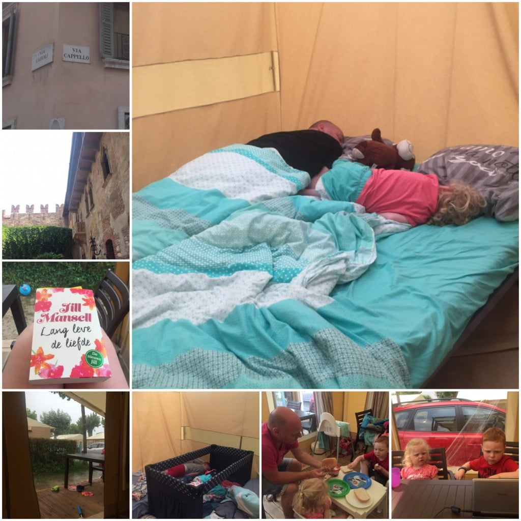 Jaaaaaaa! We hadden een goede nacht!! De kinderen sliepen uit tot iets voor half acht! Heerlijk! Zou het dan toch het bed zijn geweest waar Giulia problemen mee had? Maakt niet uit ook! Voor nu ben ik blij 🙂 Sterker nog ik kan deze dag beginnen zoals ik dat graag doe. In mijn eentje, buiten voor de tent, met een boek! Dat is voor mij het ultieme vakantiegevoel. Niet dat ik een letter gelezen heb, maar het idee alleen al! Op naar meer van dit soort ochtenden 🙂