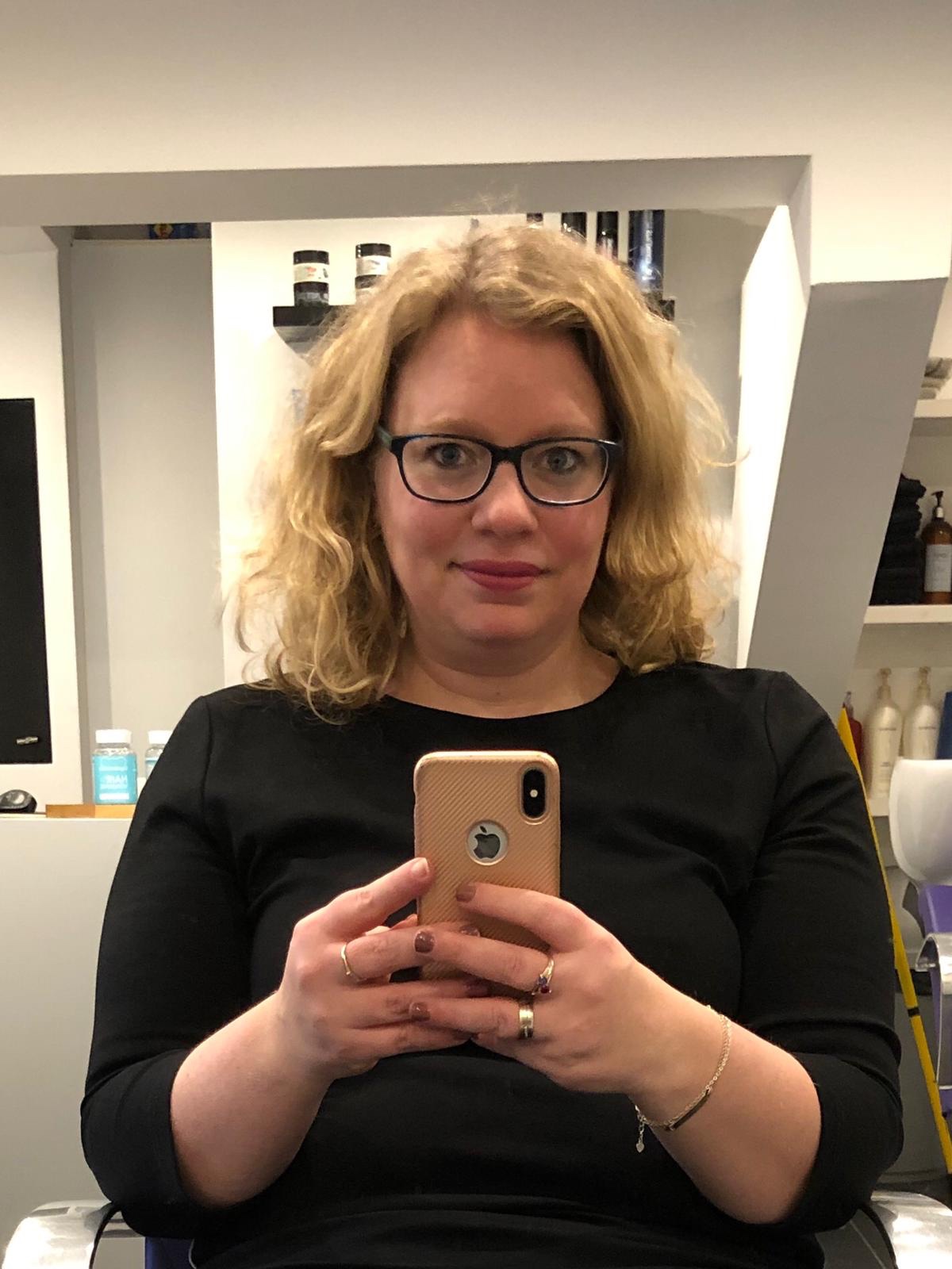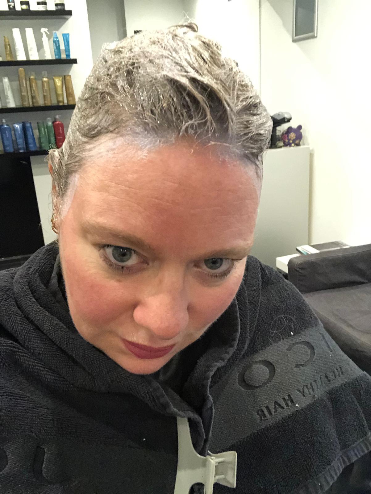 Na de highlights werd er ook nog een asblonde spoeling aangebracht, om de gele gloed tegen te gaan. Overigens mag ik dat ook bijhouden door één keer per week met zilvershampoo te wassen.