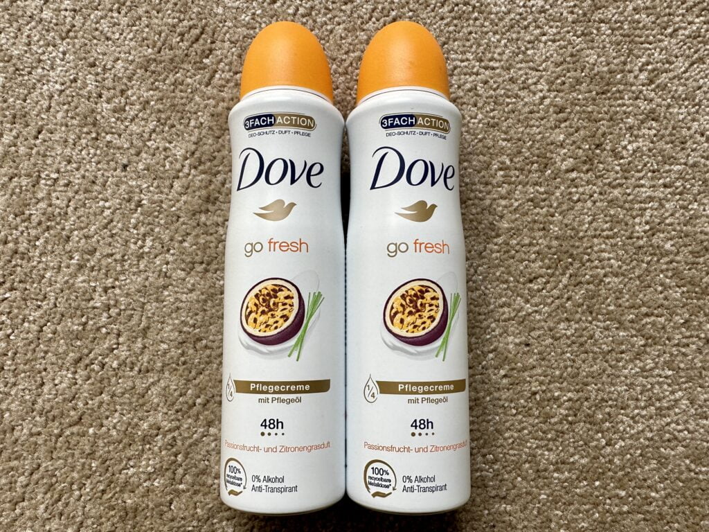 Voor het eerst nam ik een andere variant deodorant mee. Normaal gesproken neem ik de wintercare of zomervariant van Dove mee, maar in april zijn deze er beide niet (meer). Dus nu gekozen voor de variant met passievrucht en citroengras, ik ben erg benieuwd of deze net zo fijn is als die ik normaal heb.