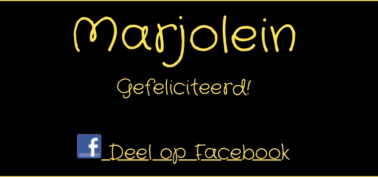 Gefeliciteerd!! Het mailtje is onderweg, zorg je ervoor dat je binnen 72 uur reageert, anders ga ik een andere winnaar kiezen.