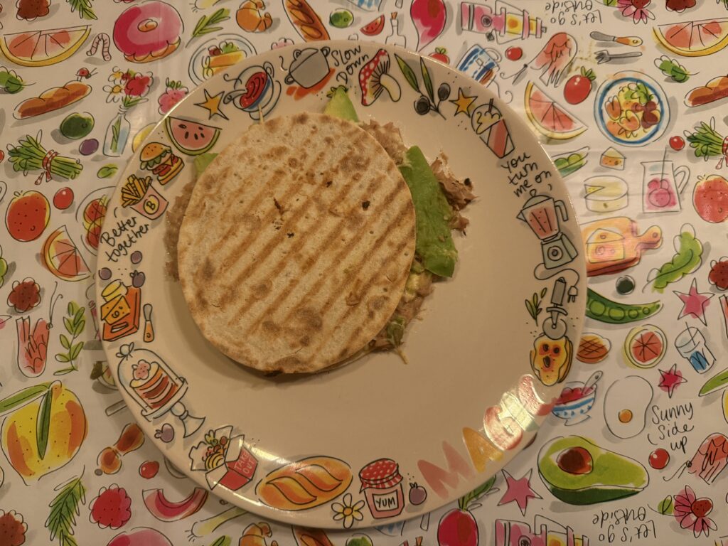 Voor het avondeten maak ik flatbread met tonijn, avocado, tomaat en kaas. Het is echt heerlijk.
