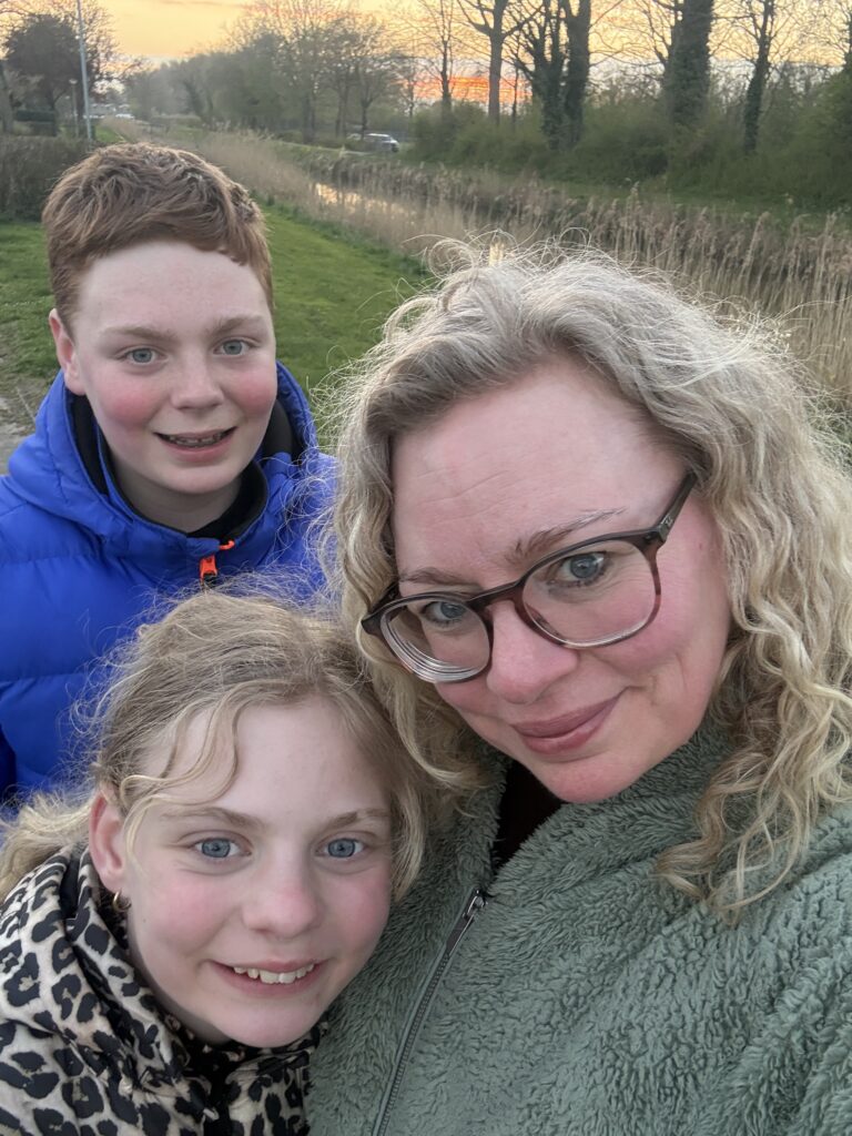 We gaan lekker wandelen met zijn drieën, het is er heerlijk weer voor.