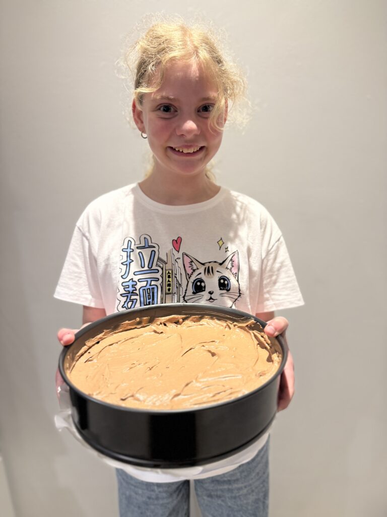 Aangezien ze van een pony is afgevallen vorige week, mag ze trakteren. Dus maken we samen chocoladecheesecake.