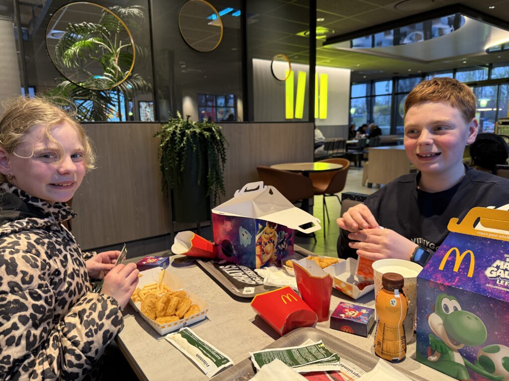 Als de kinderen op bed liggen, ben ik blij dat ik kan gaan zitten.
