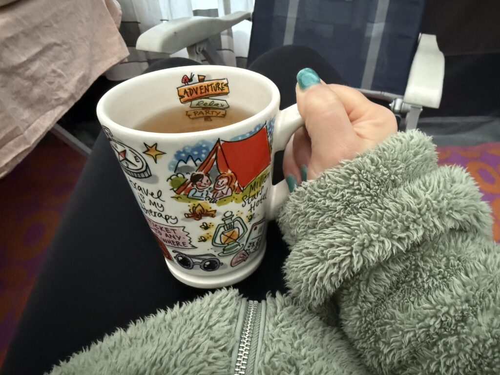 Hier hou ik zo van he, heerlijk in mijn eentje opstarten, bakkie thee en een boek erbij. Mij niet meer bellen.
