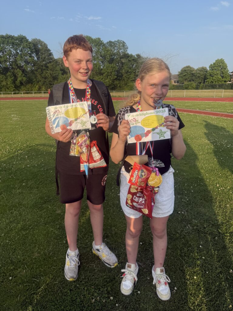 Van mij krijgen ze voor het behalen van de avondvierdaagse allebei een boek.