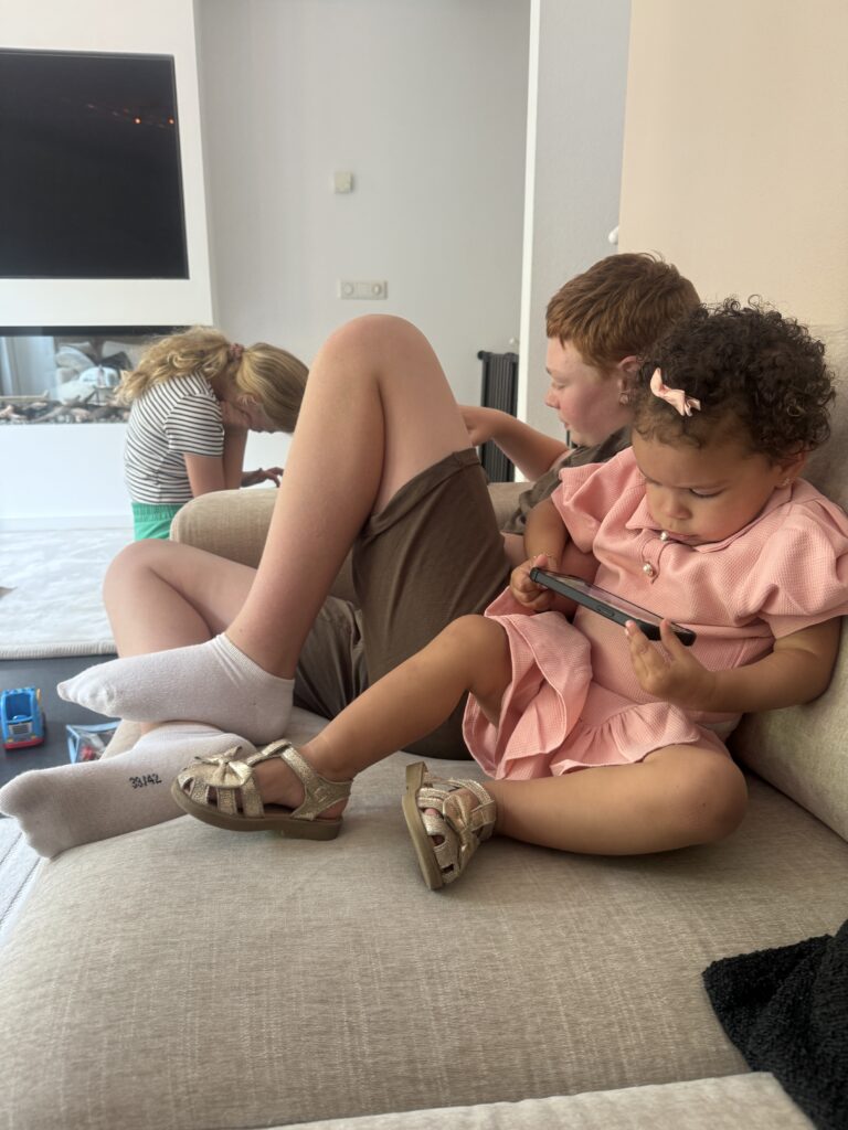 Iets na enen haal ik de kinderen weer op. Ze hebben helemaal geen zin om mee te gaan en dat snap ik, maar ja morgen moeten ze gewoon weer naar school toe. Mijn nichtje is helemaal weg van mijn puber en dat is echt onwijs grappig om te zien.