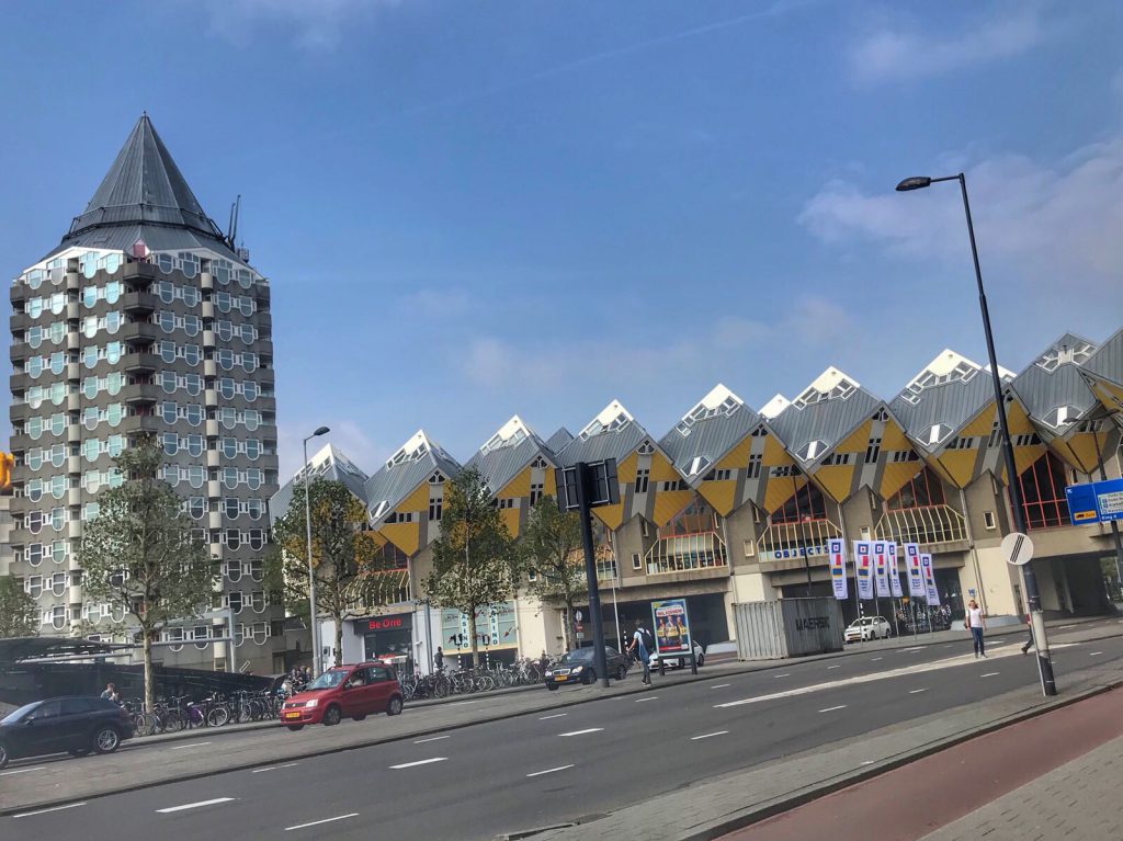Als ik naar het station toe loop kan ik het niet laten om de kubuswoningen op de foto te zetten. Heel eerlijk vind ik ze echt spuuglelijk, maar ze horen wel echt bij Rotterdam.