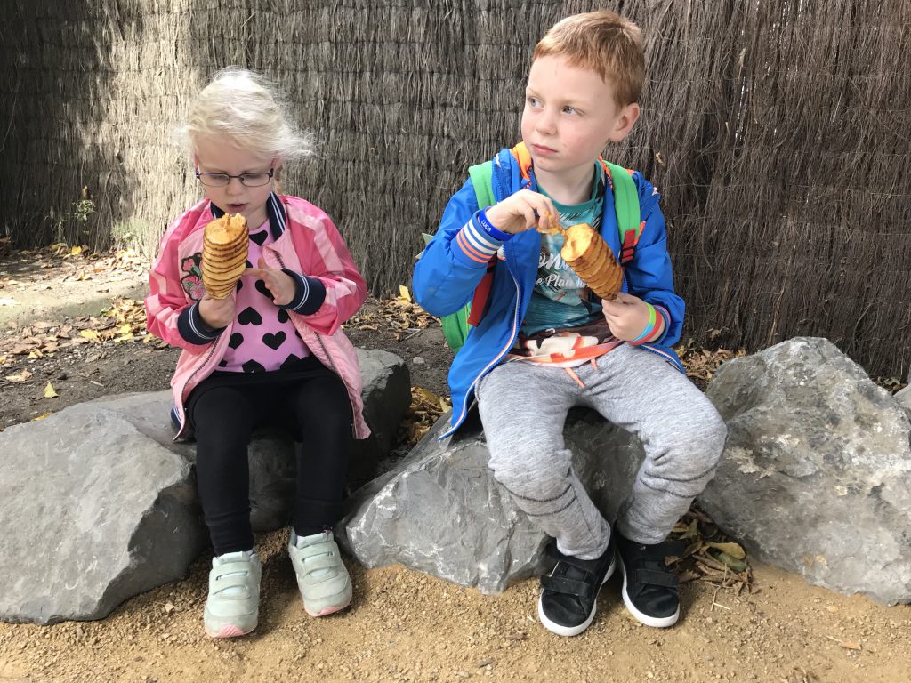 Uiteraard wordt er ook wat gegeten in Blijdorp. De aardappels op het stokje zijn favoriet en gaan er goed in bij allebei.