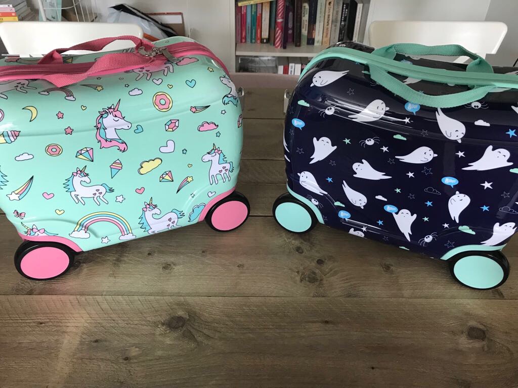 De kinderen krijgen voor de vakantie allebei een trolley voor hun speelgoed. Ze zijn er superblij mee en gebruiken de koffer als auto.Voor mijn facebook-pagina maak ik alvast een vakantieproof omslagfoto.