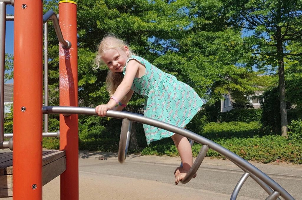 Giulia mag vandaag officieel naar de bso toe. En ze heeft meteen een uitstapje naar het koeienveld. Daar waar ik, als tienjarige en daarna als puber, ook nog heb gehangen met vriendinnen en vriendjes. Maar de speeltuin is er nu veel uitgebreider dan toen. Ze vermaakt zich in ieder geval prima.
