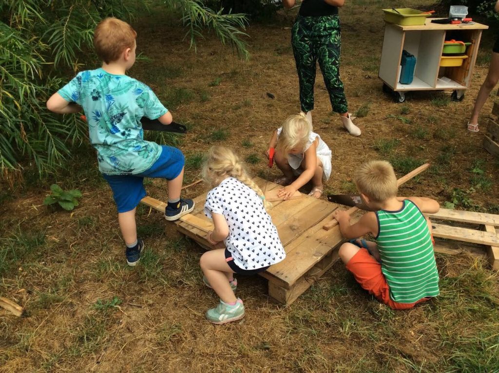 De kinderen gaan hutten bouwen met de bso bij de scouting.