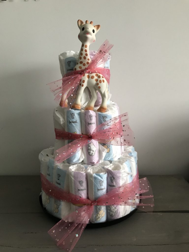 Voor mijn lieve vriendin organiseerde ik een babyshower. En maakte ik een hele gave luiertaart met Sophie de Giraf.