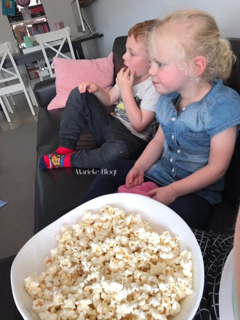 Ze zijn hier gek op filmpjes kijken, maar langer dan een uur moet het nog niet duren, want dan zijn ze er wel klaar mee. Gelukkig staat op Netflix de film van Thomas de Trein en het Heldenverhaal. Lang genoeg voor mijn twee moppies. Bak popcorn erbij en je hoort alleen nog maar het gekraak van popcorn 😉