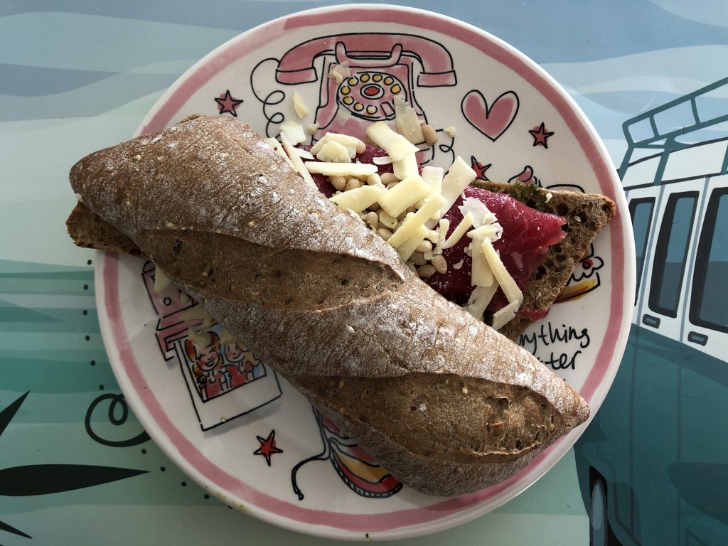 Als we terugkomen maak ik lekker een broodje carpaccio voor de lunch.