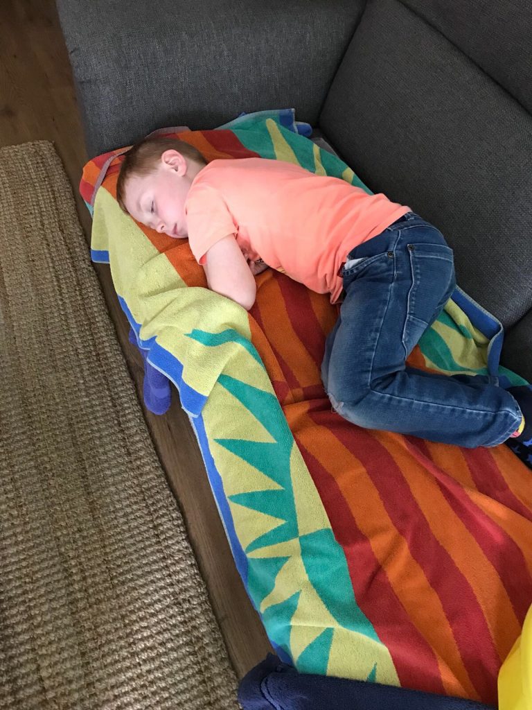 Giulia valt in de loop van de ochtend nog even lekker in slaap op de bank.