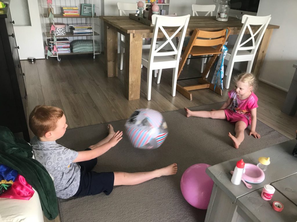 En als Erik wakker is gaan de kinderen samen overrollen met een strandbal, die ze in de kast hebben gevonden.
