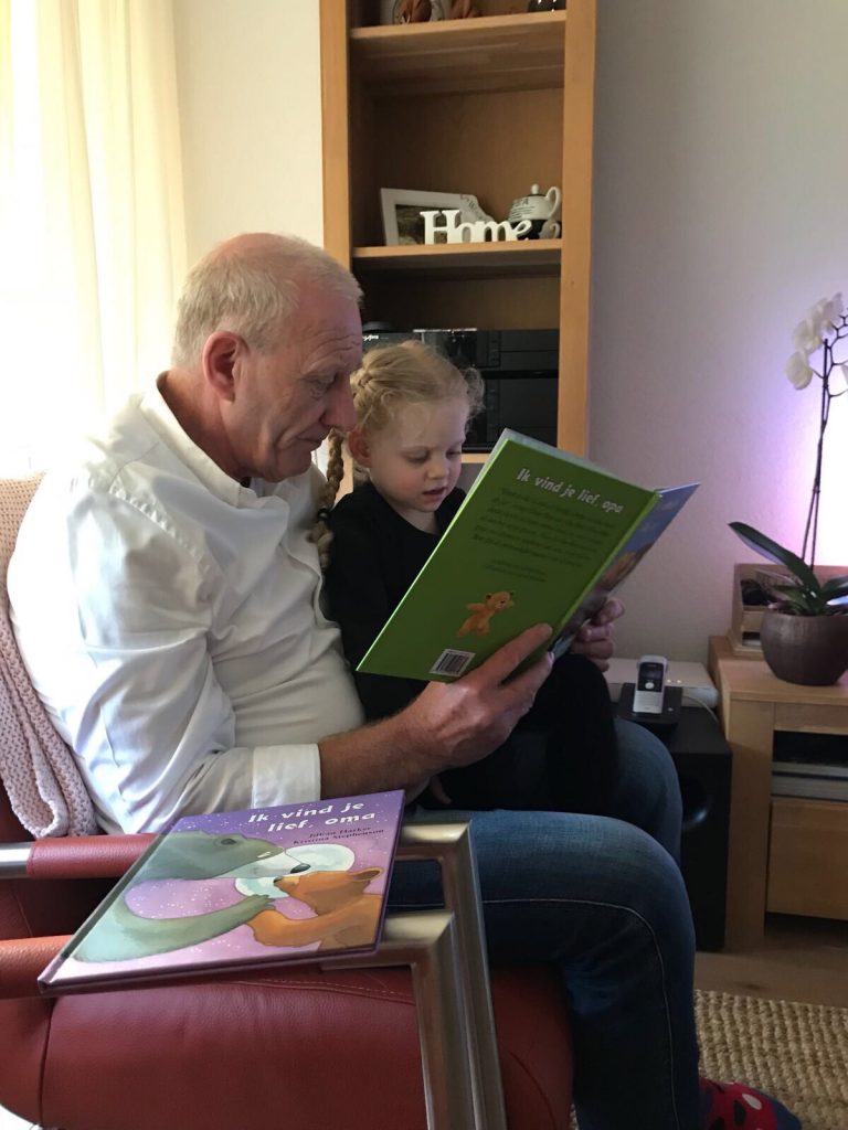 De kinderen genieten volop van de aandacht van Opa en Oma Vrachtwagen. Er wordt voorgelezen door Opa.