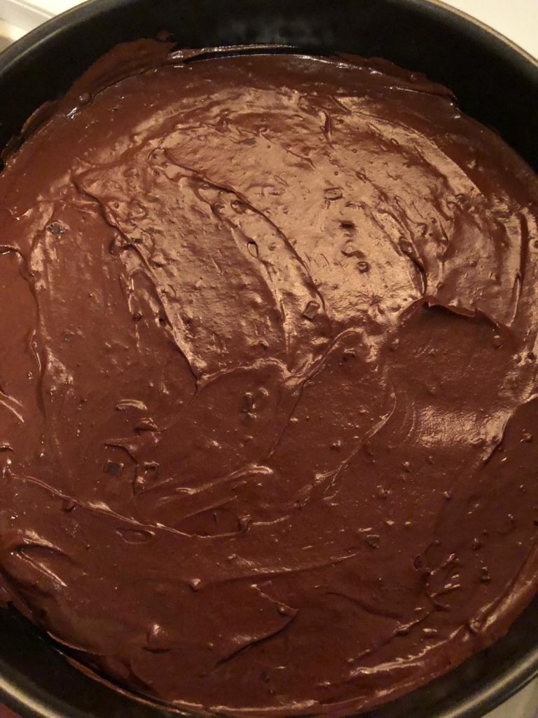 Thuis ga ik meteen een chocolade taart maken voor de kerstlunch op mijn werk.