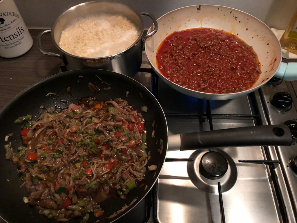 Als ik thuis kom ga ik meteen vol aan de bak met koken, voor zowel vandaag als morgen. Anders redden we het morgen niet met de kerstviering van de kinderen.