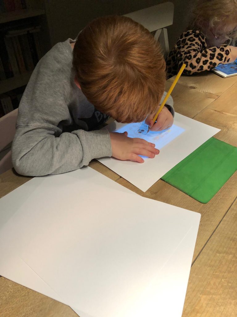 Luca is op de bso begonnen met het overtrekken van dieren met behulp van de iPad en wil dat thuis ook, maar helaas voor hem lukt dat nog niet zo.