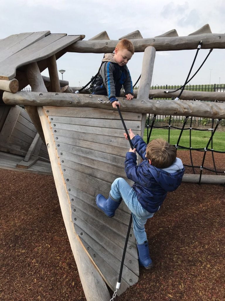 Naast het restaurant is nog een klimtoren, waar de kinderen uiteraard nog in gaan.