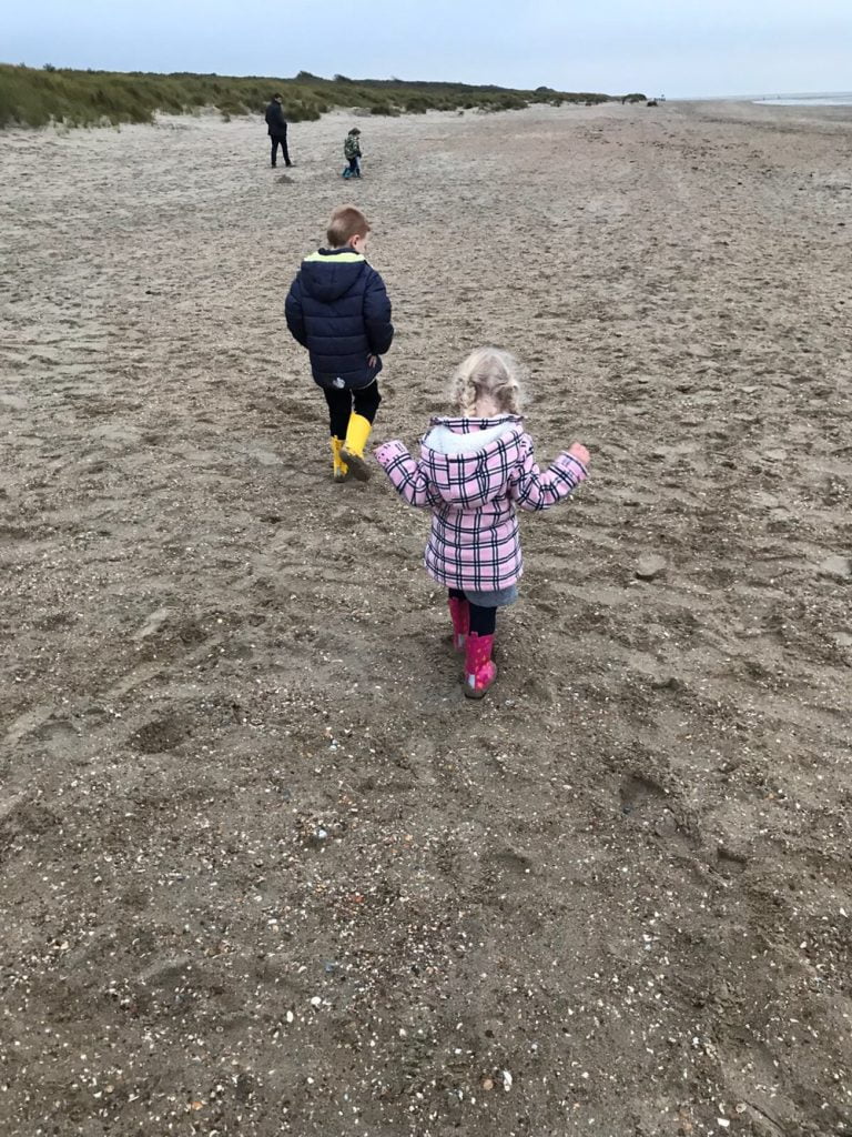 ‘s Middags gaan we met zijn allen nog even het strand op. Heerlijk uitwaaien en ook nog een beetje verregenen. Maar het is fijn.