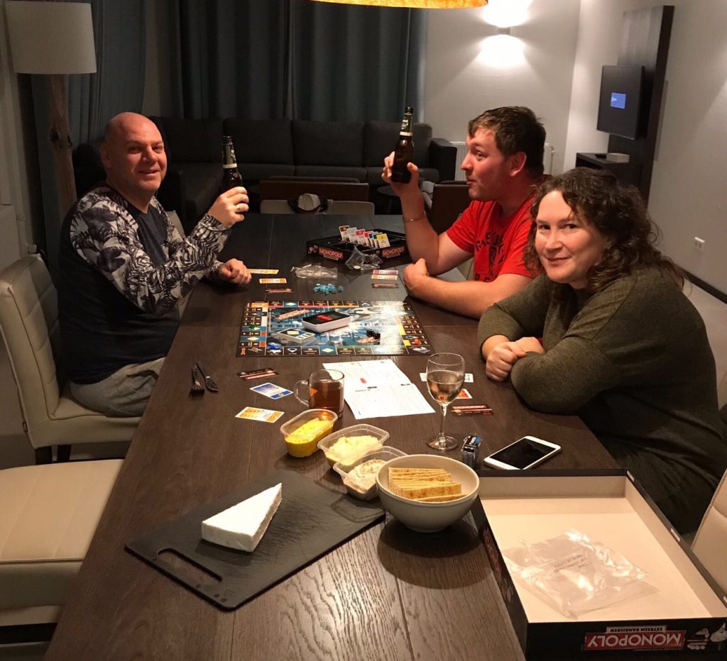 We spelen ook nog met zijn vieren gezellig een spelletje Monopoly Extreem bankieren. Ook hier lees je binnenkort meer over op mijn blog.