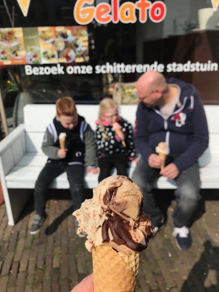 ’s Middags gaan we naar de stad toe en eten we ons eerste Italiaanse ijsje van dit jaar. Dat er nog maar veel mogen volgen.