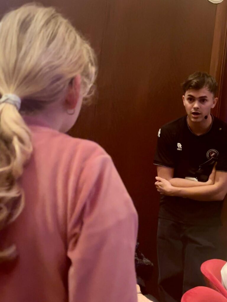 We gaan naar de Kameraadjes voetbalshow van Feyenoord en dat is wel heel erg leuk. Het feit dat we in het stadion zijn, vinden ze al helemaal geweldig. We vinden het alleen wel jammer dat er niet een fotomoment is met de voetballers.