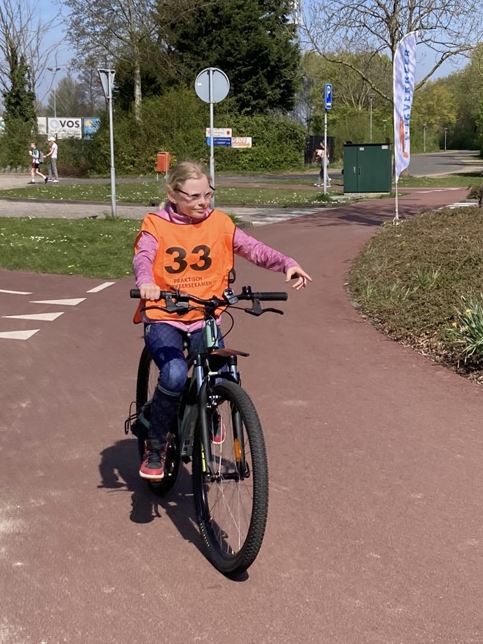 Mijn tiener heeft fietsexamen, waar we samen voor oefenen. Ze doet het examen hartstikke goed en is dus geslaagd.