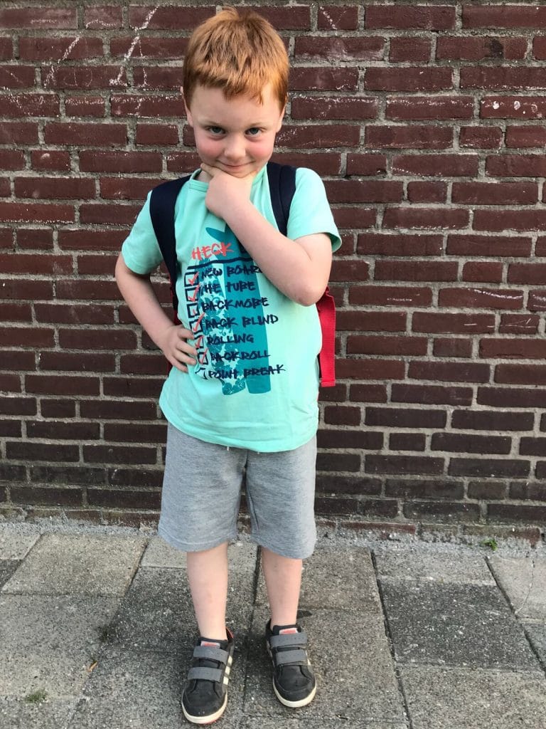 Uiteraard wil Luca ook nog even op de foto. Maar wel lekker stoer natuurlijk. Zijn outfit: shirt en broek van Name it, schoenen van Adidas.