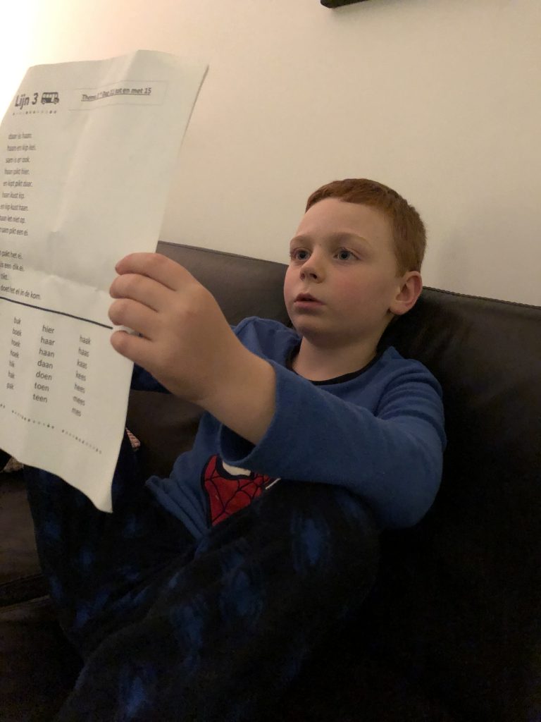 ‘s Avonds word ik nog voorgelezen door mijn binkie, die nog even wat woorden en zinnen oefent.