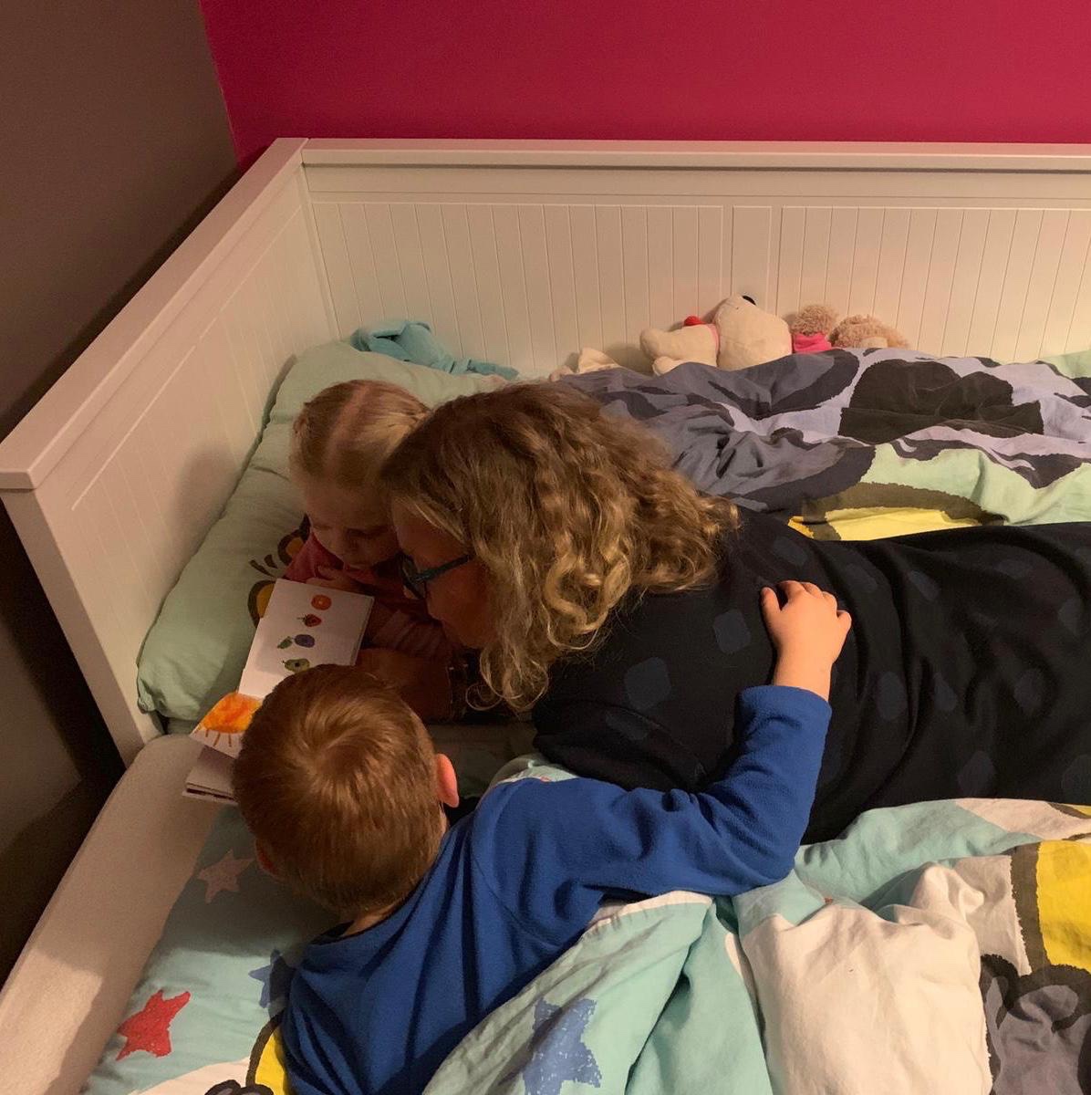 Voordat de kinderen naar bed gaan, kroel ik nog even lekker met ze. Toch een voordeel dat ze nu samen slapen in één bed.