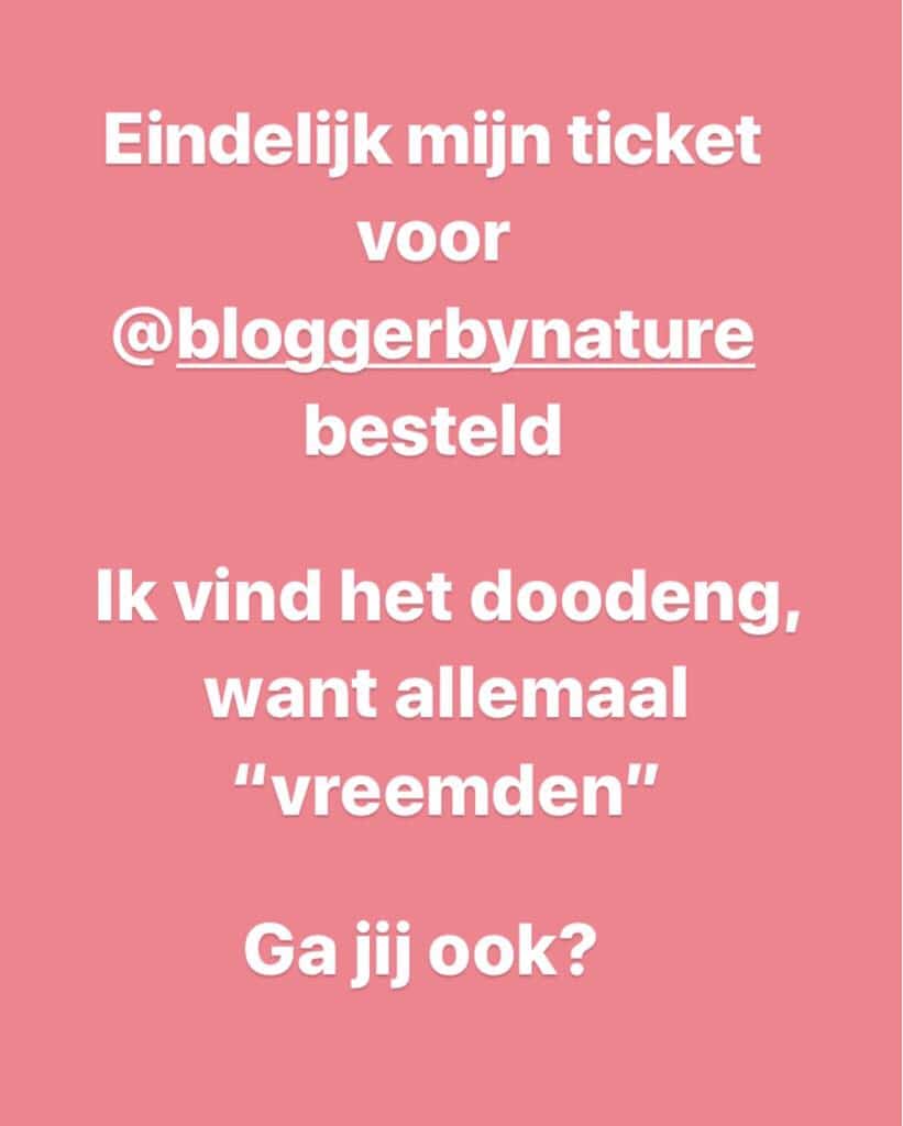 ’s Avonds stap ik uit mijn comfort zone en doe ik iets wat ik niet snel doe. Ik koop een ticket voor Blogger By Nature. Een event voor bloggers, waar ik echt heel veel van kan leren.