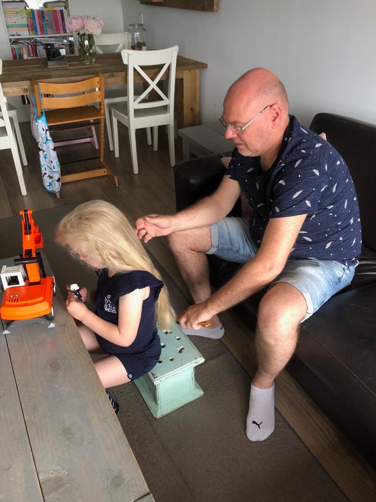 De man kamt het haar van mijn tuttebel uit en kan dat volgens haar heel erg goed, wordt tijd dat hij ook leert vlechten 😉