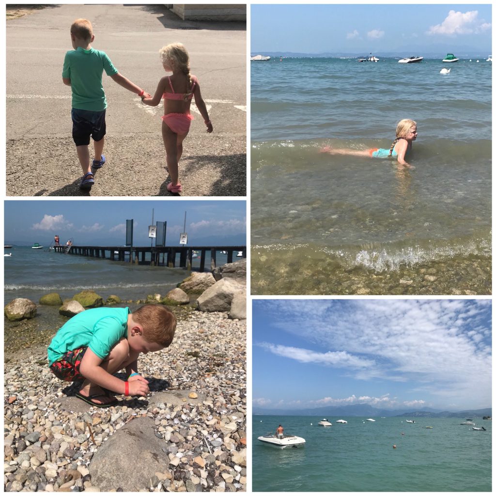 Vanmorgen brachten we een bezoek aan het Gardameer. Waar onze eigen Freek Vonk genoot van het schelpjes zoeken en het water. En ook Giulia wilde het water in, iets wat ik echt niet had verwacht, maar ze vond het eerlijk.