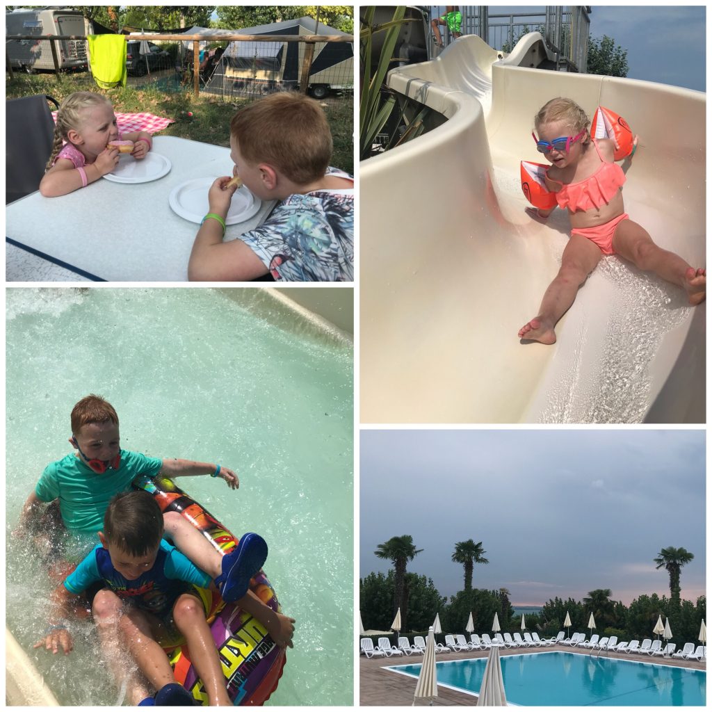 Vandaag begonnen de kinderen met donuts als ontbijt. Daarna gaan we lekker een hele poos zwemmen, glijden en gek doen in het zwembad. Vanmiddag gaan we nog even op de buurcamping kijken, omdat we nieuwsgierig zijn en omdat ik iemand op wil zoeken, die er helaas op dat moment niet is. Uiteraard is het ook weer cocktailtijd rond een uur of zes. Daarna gaan we heerlijk eten en sluiten we de avond af bij de kinderdisco, waar Luca en Giulia zich prima vermaken met hun nieuwe vriendinnetje Joolz!