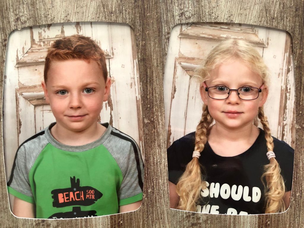 Krijg ik op school de schoolfoto’s mee van de kinderen. En voor schoolfoto’s vind ik ze echt goed gelukt. Luca en Giulia staan er allebei op zoals ze zijn.