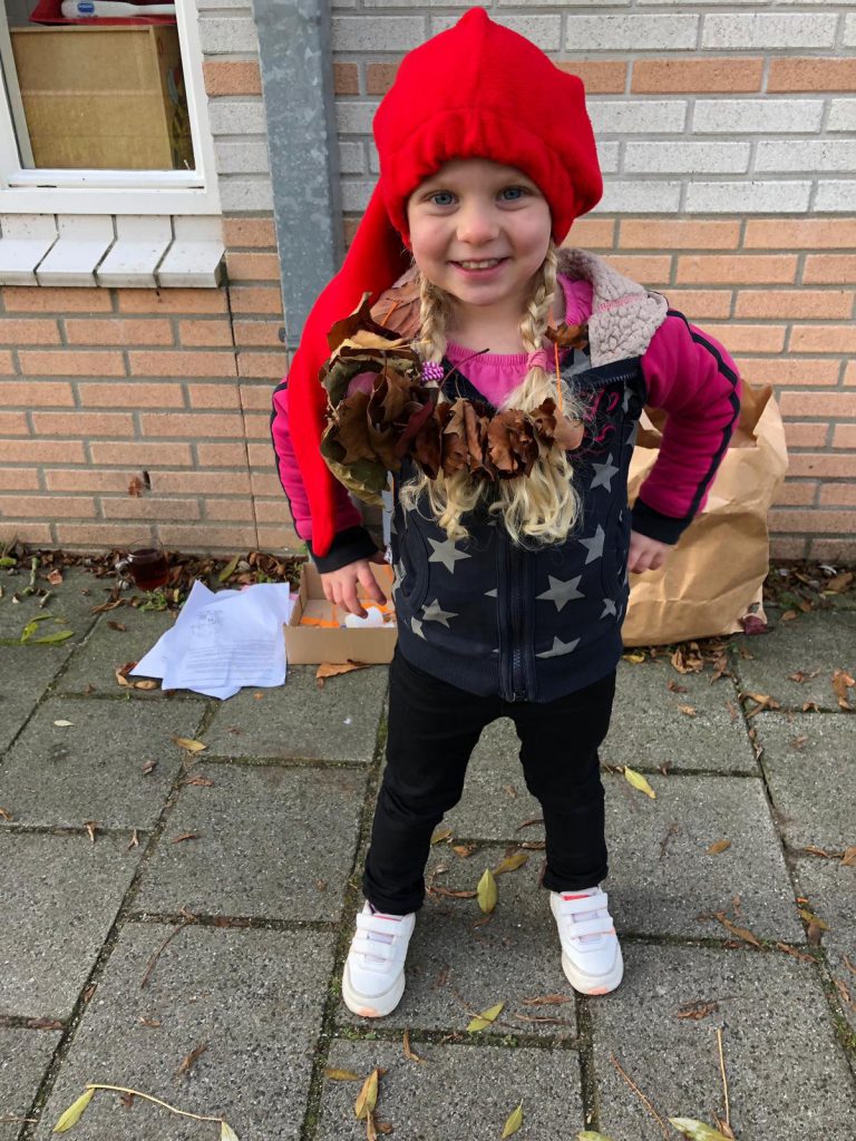 Ik mag ook op school blijven, want ik help mee tijdens het kabouterpad van Giulia’s klas. Het wordt nog eens wat met mij. Bij de één hulpmoeder en bij de ander luizenmoeder.