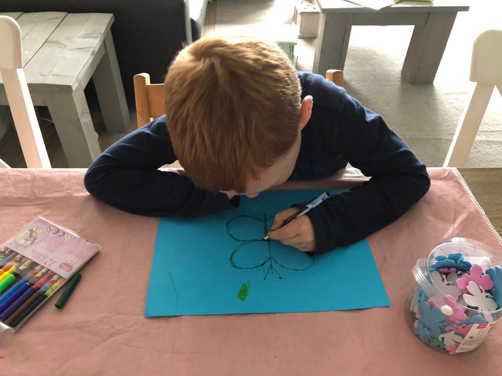 Met de kinderen ga ik een paar uur naar Monkeytown, om ze uit te laten razen, wat echt enorm nodig is. Als we thuis zijn, doen we lekker rustig aan en wordt er getekend en gekleurd.