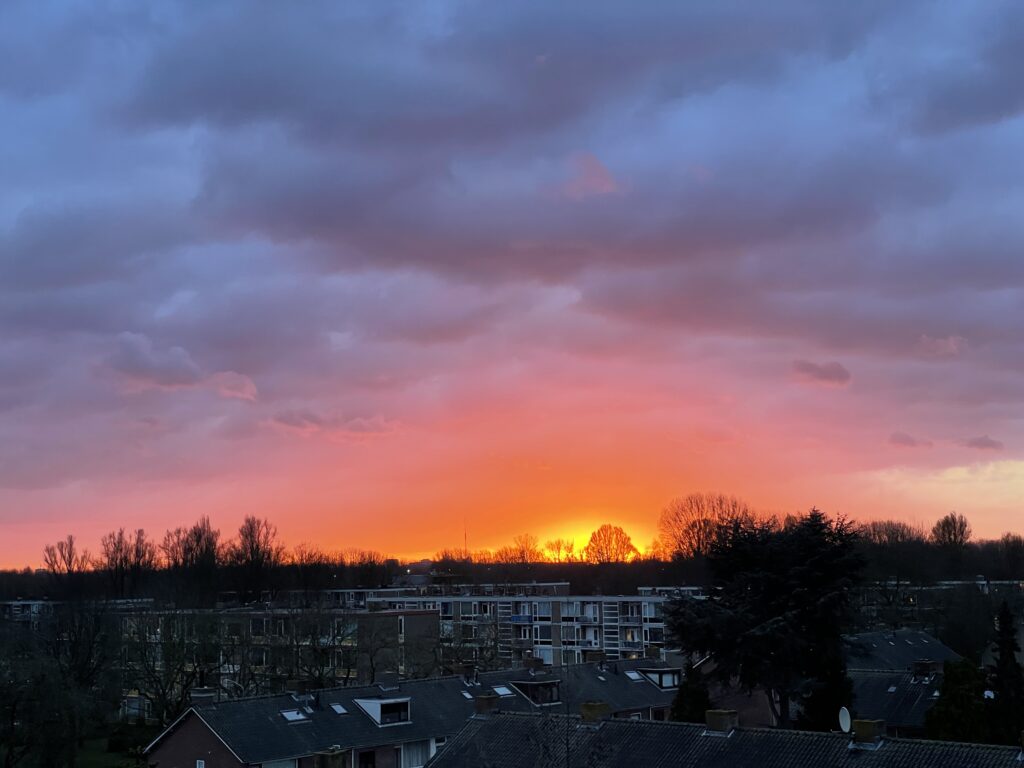 Voordat we aan tafel gaan vang ik nog net even deze mooie zonsondergang met mijn camera. Ik blijf het bijzonder vinden dat het de hele dag zo bewolkt kan zijn en je dan toch zo’n zonsondergang kunt hebben.